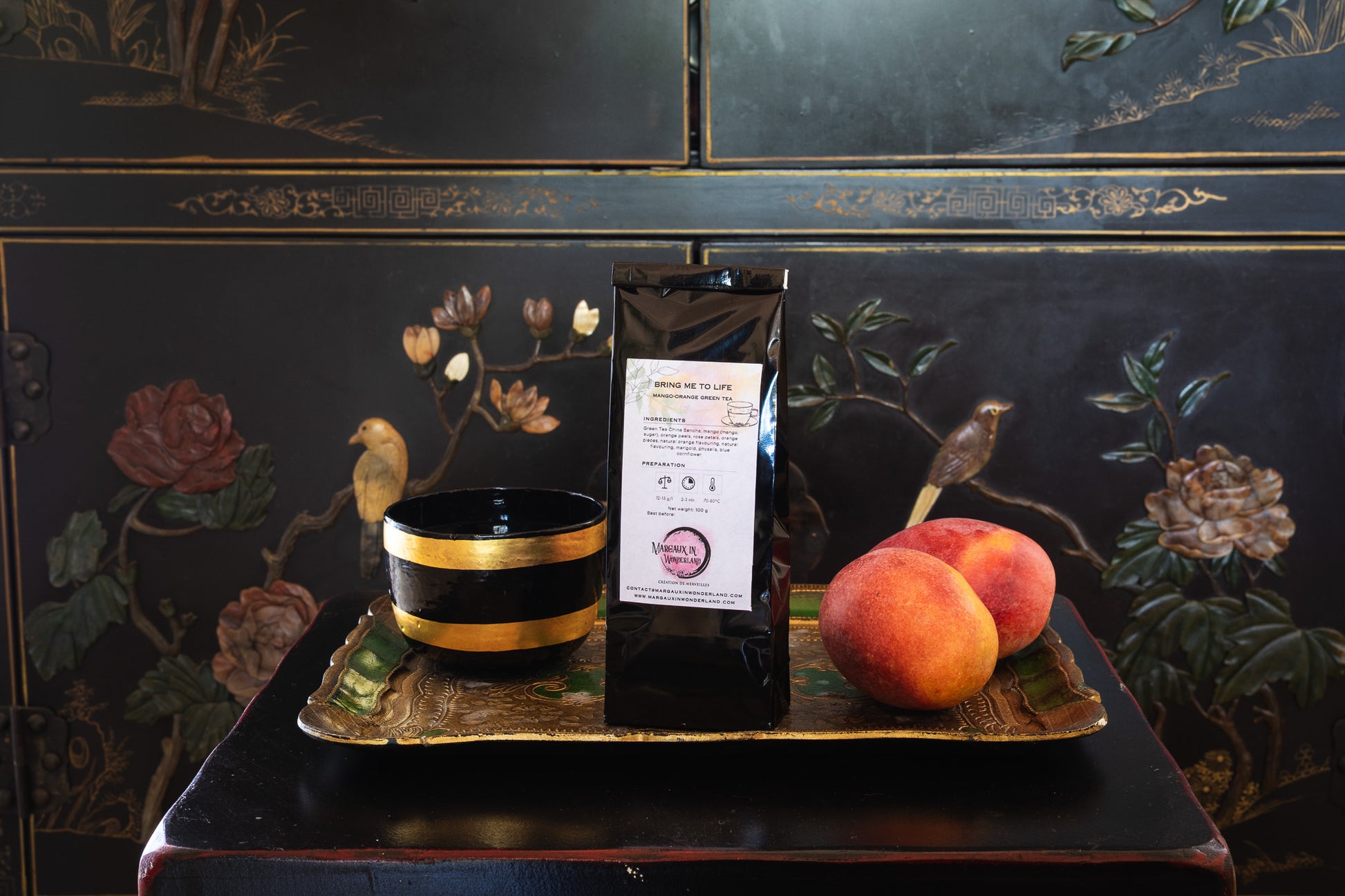Unser köstlicher „Bring me to life“-Tee weckt Ihre Sinne. Genießen Sie den süßen Geschmack von Mango, gemischt mit Orange und grünem Tee, für eine Tasse, die sowohl beruhigend als auch belebend ist. „Bring me to life“ belebt Sie mit jedem Schluck für einen Tag voller Energie!
